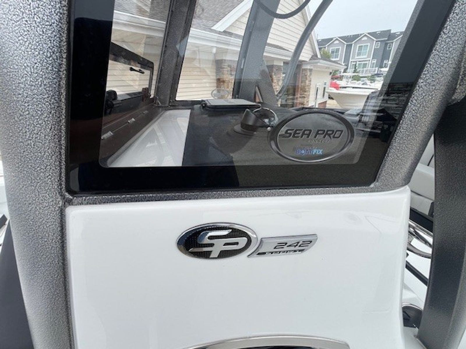 The Sea Pro 242 Sport is packed with premium features that elevate your boating experience. The Platinum upholstery adds a touch of elegance and comfort, creating a welcoming environment for you and your guests. The Deluxe Leaning Post offers ergonomic support for long days at the helm, while the Leaning Post Cover and Dash Panel Cover provide protection from the elements, ensuring your boat stays in top condition.For anchoring, the Lewmar Thru-Hull Windlass Pro-Fish 1000 delivers reliable and effortless anchoring, making it easy to secure your spot whether you’re fishing or relaxing. The battery charging system (12/24 - Cranking) ensures your electronics and accessories remain powered throughout your journey. The pump-out head adds convenience for extended trips, while the Platinum top color gives the boat a modern and stylish appearance.Additional practical features include a shipping cover or shrink wrap from the dealer, offering protection during transport or storage. These thoughtful additions make the Sea Pro 242 Sport a standout option among Center Console boats for sale.