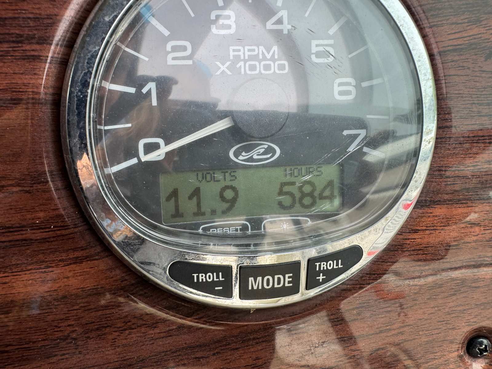 Sound system speakers throughout the cockpit keep guests entertained. The wet bar is set up on the starboard side and has storage beneath. Walk through the transom door and enjoy the large molded swim platform. The swim ladder stows nicely in the swim platform and provides great access to the water.