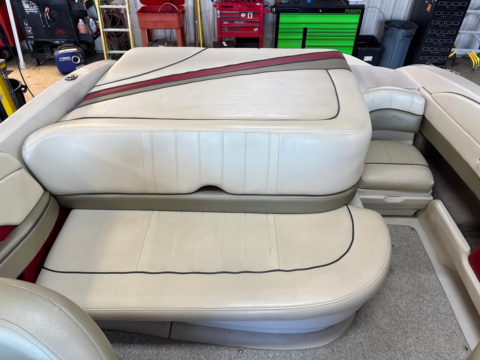 Powering this Sea Ray boat for sale is a robust single engine delivering 220 horsepower, with 599 engine hours logged. This setup provides a smooth and responsive ride, whether you are cruising along the shoreline, towing water toys, or simply enjoying a leisurely day on the lake. The 220-horsepower engine ensures you have the power needed for a variety of activities, from spirited runs across open water to gentle, fuel-efficient cruising. The engine’s proven reliability and performance make this pontoon boat a standout choice for those who value both excitement and dependability.