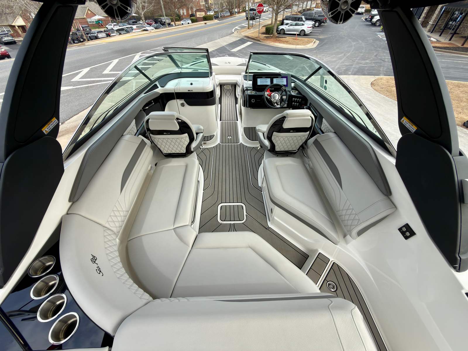 Under the hood, the Sea Ray SLX 260 Surf is powered by a robust single engine delivering 350 horsepower. This powerful setup ensures exhilarating acceleration, smooth cruising, and the ability to handle a variety of water conditions with ease. Whether you’re carving through waves, towing water skiers, or simply enjoying a leisurely cruise, the SLX 260 Surf offers responsive handling and impressive agility. The advanced hull design enhances stability and ride comfort, making every outing a pleasure.