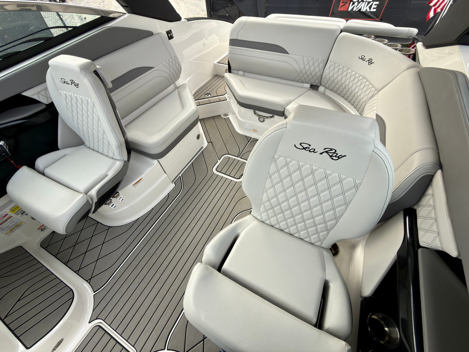 This 2024 Sea Ray SLX 260 Surf is loaded to the gills with options! Powered by Sea Ray’s surf-specific propulsion and Smart Surf technology, this boat delivers a clean, customizable wave without sacrificing the ride quality Sea Ray is known for. Deep-V hull, upscale fit and finish, and smart storage throughout. Notable Features Include: -Mercruiser 6.2L 350hp V8 with Bravo 4s Forward Drive (83 hours) -Subfloor ballast system with Mercury Smart Surf Tabs -Power Tower with MASSIVE Bimini top and extending shade -Fresh Water system with Shower on Transom -Vaccuflush Toilet/Head System -Simrad Glass Dash -Mercury DTS -Flip Down Swim Step -Fusion Stereo with Subwoofer & Tower Speakers -Power Anchor Windlass -Snap Bow and Cockpit -Full Cockpit SeaDek -RGB interior and Underwater Lights - Sea Ray Comfort Package (2 tables and bow filler)