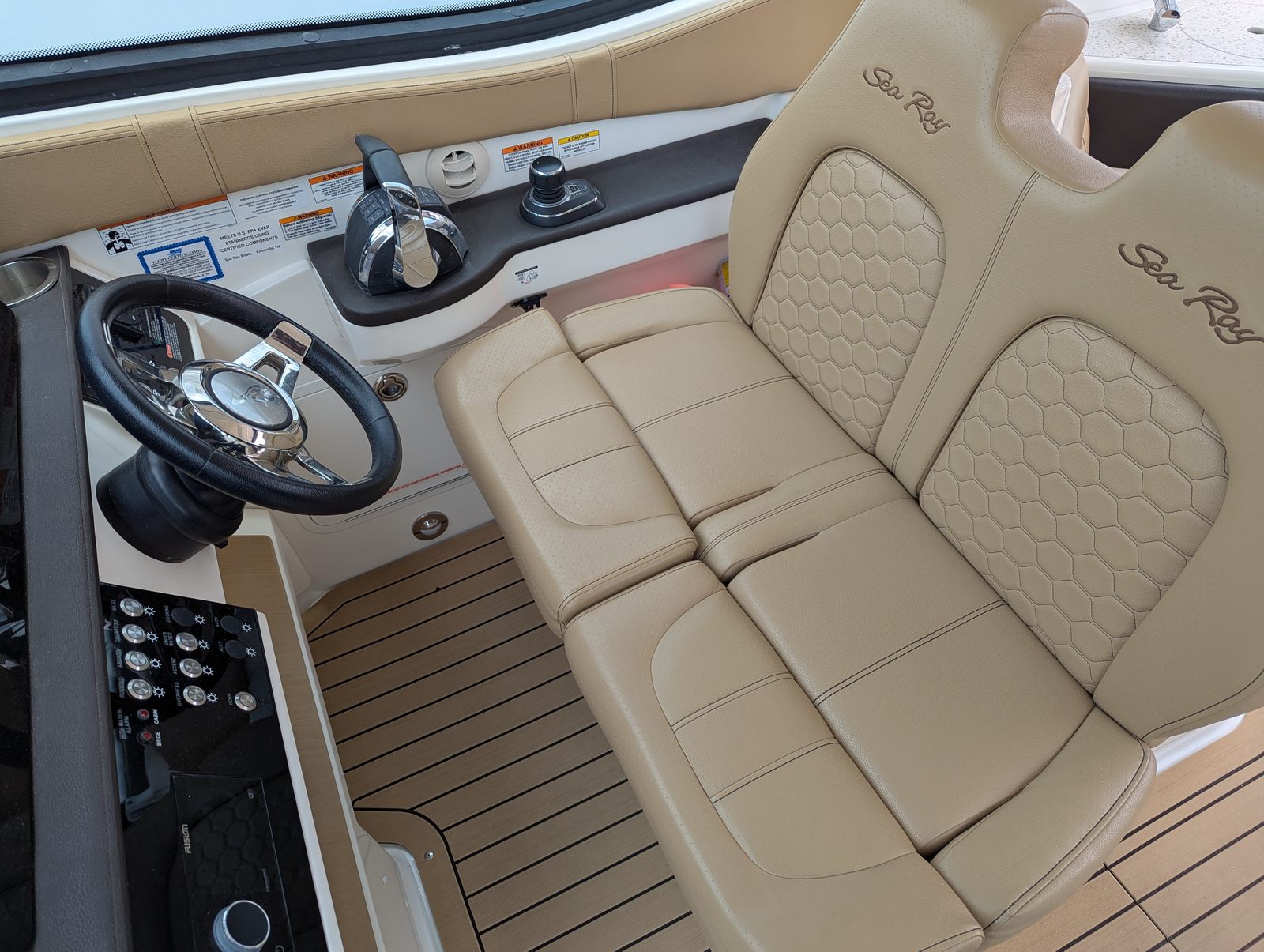 The 2020 Sea Ray Sundancer 320 is packed with features that enhance both comfort and convenience, making every outing a pleasure. The spacious layout offers plenty of room for guests, with thoughtfully designed seating areas that encourage relaxation and socializing. The cockpit is designed for easy navigation and control, putting all the essential functions at your fingertips.The Sundancer 320’s generous length of 40.25 feet provides ample space for lounging, dining, and entertaining. The open layout allows for seamless movement throughout the boat, whether you are hosting a lively gathering or enjoying a quiet evening on the water. The high-quality materials and finishes throughout the boat reflect Sea Ray’s commitment to luxury and durability.