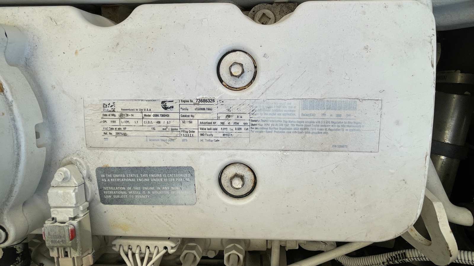Twin Cummins QSB 380 Engines, delivering: