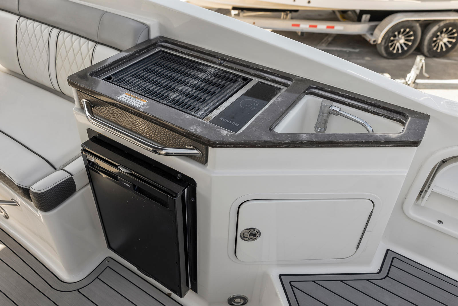 Powering the Sea Ray Sundeck 290 are two robust engines, delivering a combined 500 horsepower. With only 371 engine hours, these engines promise reliable performance and plenty of life left for future adventures. The dual-engine setup ensures smooth acceleration, responsive handling, and the ability to reach impressive speeds, whether you’re cruising along the coastline or heading out for a day of watersports. The Sundeck 290’s performance capabilities make it a top choice for those who want both excitement and dependability from their Bowrider boat.