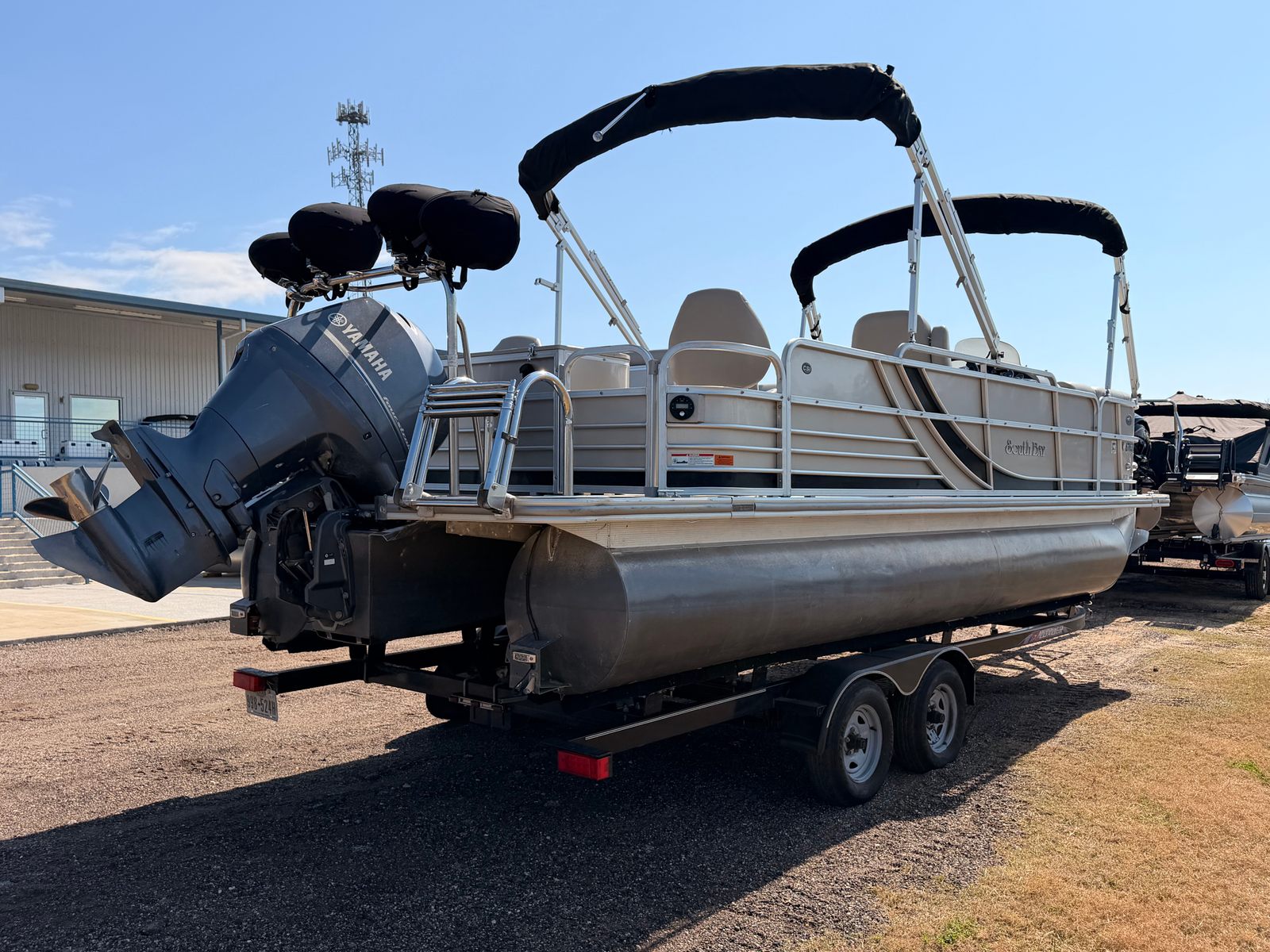 This South Bay boat for sale is as practical as it is enjoyable. The generous storage options allow you to bring along all the gear you need for a day of fishing, swimming, or relaxing. The pontoon’s design makes docking and launching straightforward, so you can spend less time preparing and more time enjoying your day. The fuel-efficient engine helps keep operating costs down, making this pontoon boat an economical choice for families and boating enthusiasts alike.The 23-foot length strikes the perfect balance between spaciousness and maneuverability, making it easy to handle in a variety of settings, from busy marinas to quiet coves. The sturdy construction and reliable engine ensure that you can count on this boat for years to come, whether you are exploring new waterways or returning to your favorite spots.