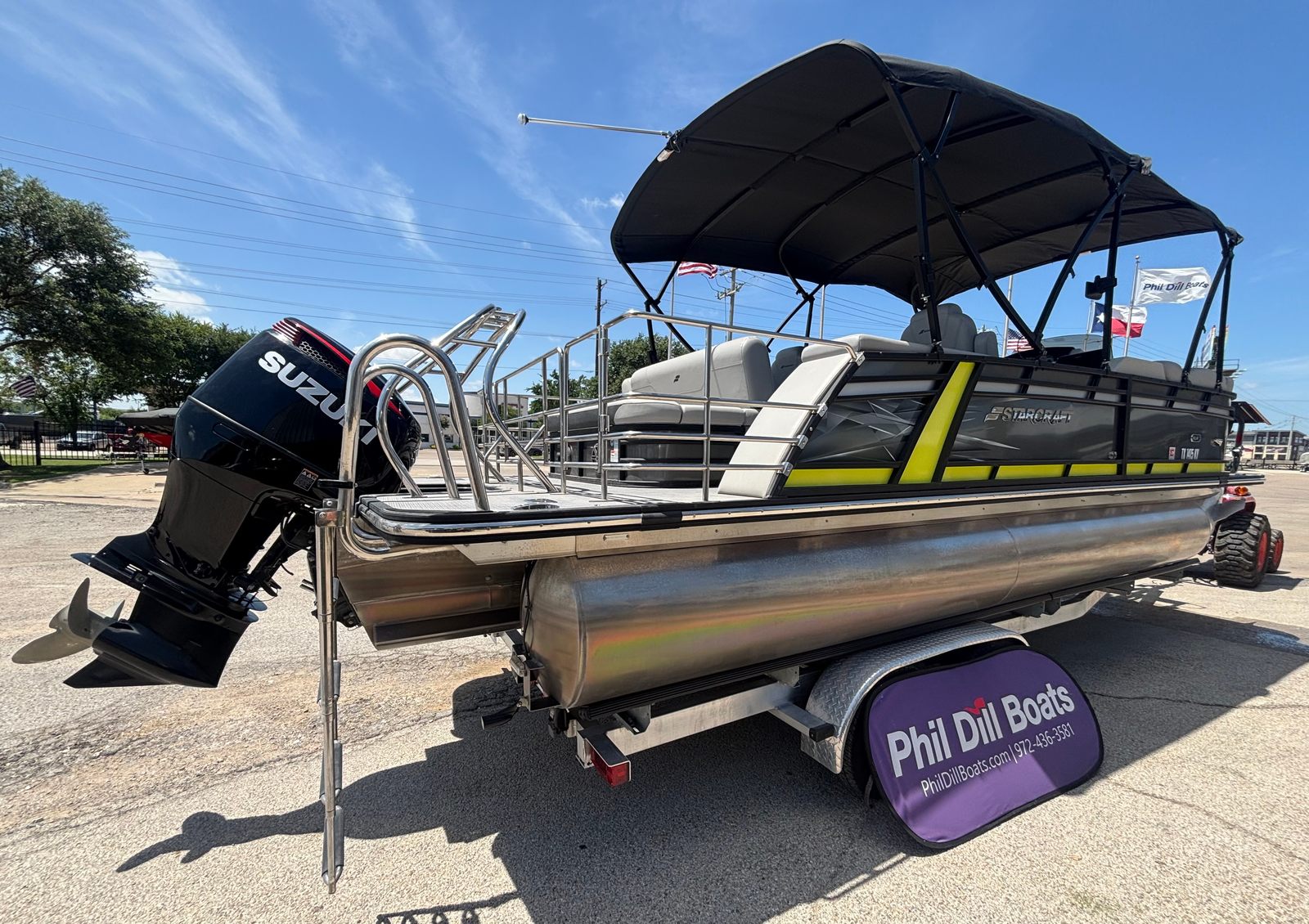 The 2023 Starcraft SLS 3QDH stands out as a modern pontoon boat that offers a perfect balance of spaciousness and agility. At 25 feet in length, this model provides ample room for relaxation, socializing, and enjoying the open water. Its sleek design and contemporary lines make it a head-turner at any marina or lake, while its robust construction ensures years of reliable enjoyment. As a used pontoon boat for sale, it offers exceptional value, allowing you to experience the luxury and innovation of Starcraft without the new-boat price tag.