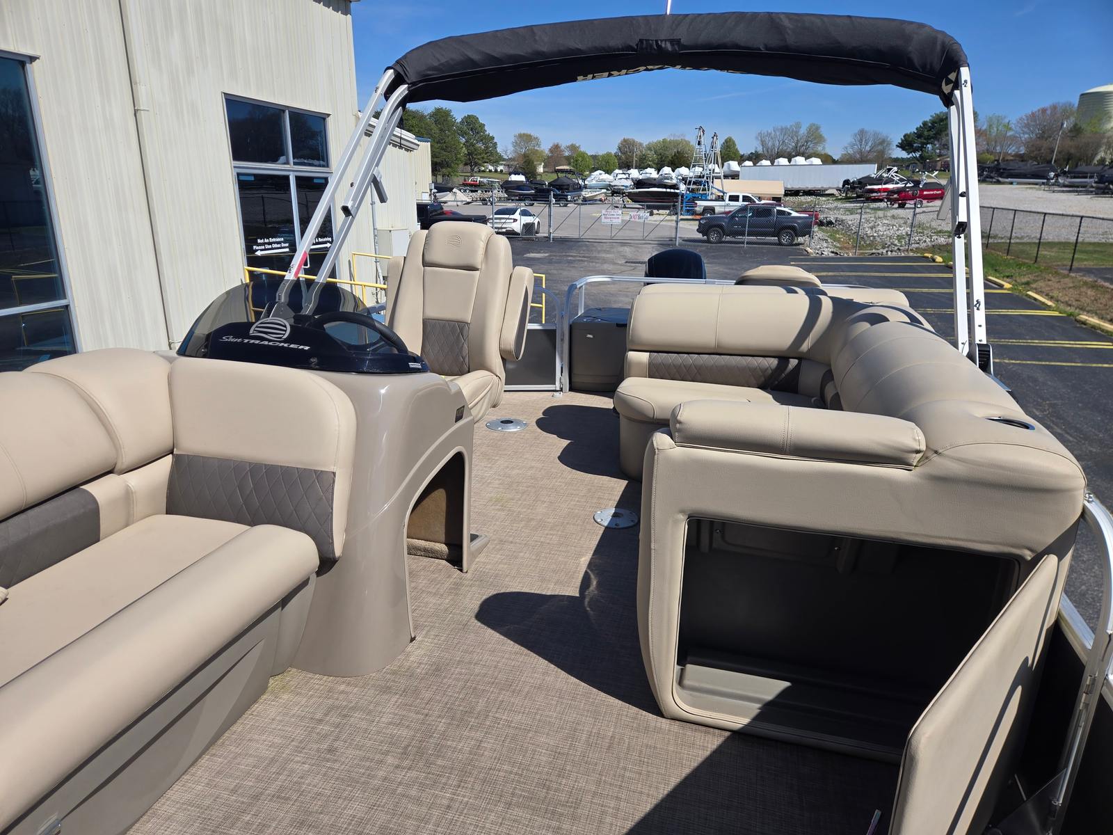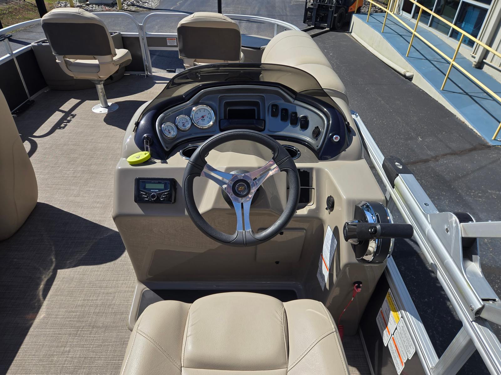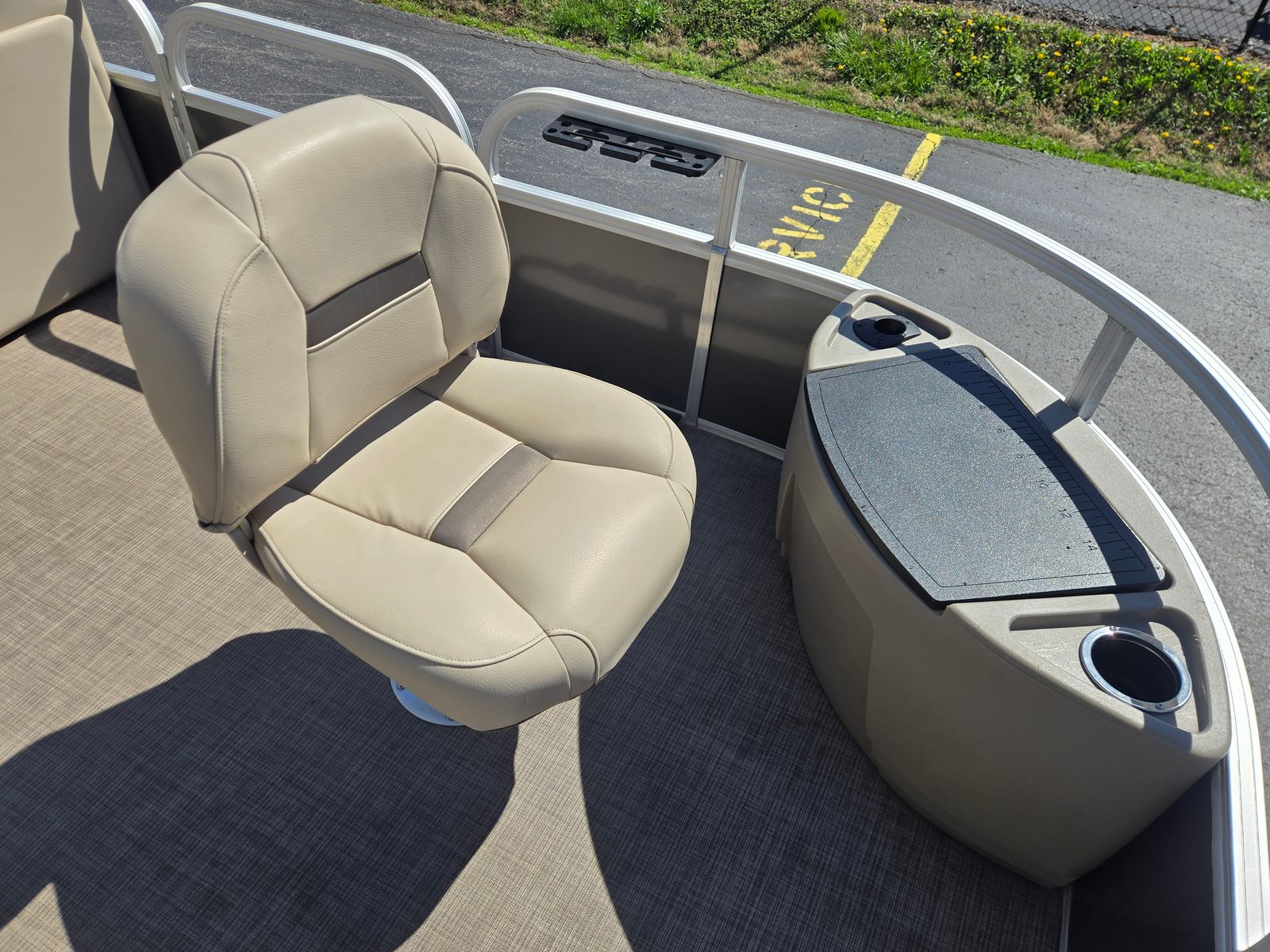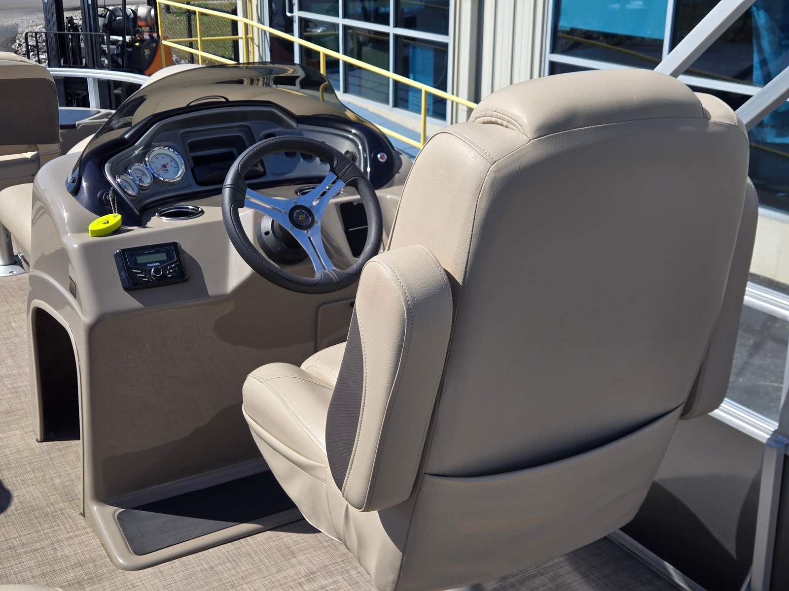 The Sun Tracker Fishing Barge 20 DLX is thoughtfully designed to maximize both comfort and functionality. Its spacious deck layout offers ample room for family, friends, and all your gear. The pontoon’s nearly 22-foot length provides plenty of space for socializing, fishing, or relaxing under the sun. The sturdy construction and high-quality materials ensure durability and longevity, making this pontoon boat a smart investment for years of enjoyment.Special features of the 2023 Sun Tracker Fishing Barge 20 DLX include a versatile deck plan that accommodates both fishing and leisure activities. The wide, stable platform is perfect for casting lines, setting up chairs, or enjoying a picnic on the water. With its comfortable seating arrangements, you and your guests can relax in style while taking in the scenic views. The boat’s intuitive layout makes it easy to move around, ensuring everyone on board has a great time.