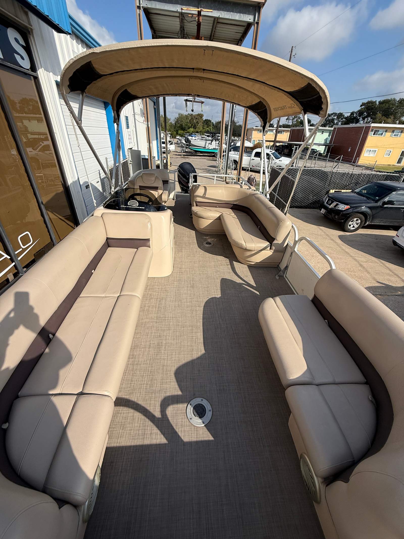 Powering this Sun Tracker Party Barge 22 is a single engine with an impressive 115 horsepower. This setup ensures smooth cruising, responsive handling, and enough power to tow water toys or reach your favorite swimming spot with ease. The engine’s reliable performance means you can focus on making memories, not worrying about getting there. Whether you are gliding across calm waters or navigating a busy marina, the Party Barge 22’s engine delivers a satisfying blend of efficiency and excitement.