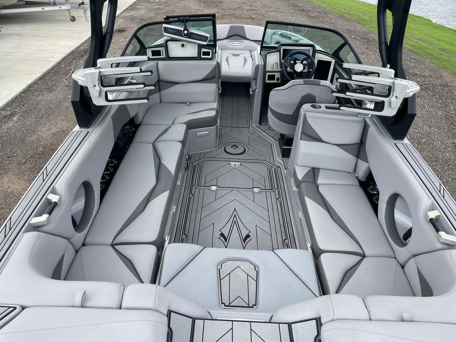 The 2019 Supra SL 450 is loaded with features that enhance both performance and comfort. Its advanced hull design creates the perfect wake for both beginners and seasoned pros, while the spacious interior ensures everyone on board can relax and enjoy the ride. The intuitive helm layout puts all controls within easy reach, allowing the captain to focus on the fun. Premium seating materials, ample storage compartments, and a thoughtfully designed cockpit make every outing comfortable and convenient. The Supra SL 450’s innovative ballast system allows you to customize the wake shape and size, ensuring every session is tailored to your preferences.