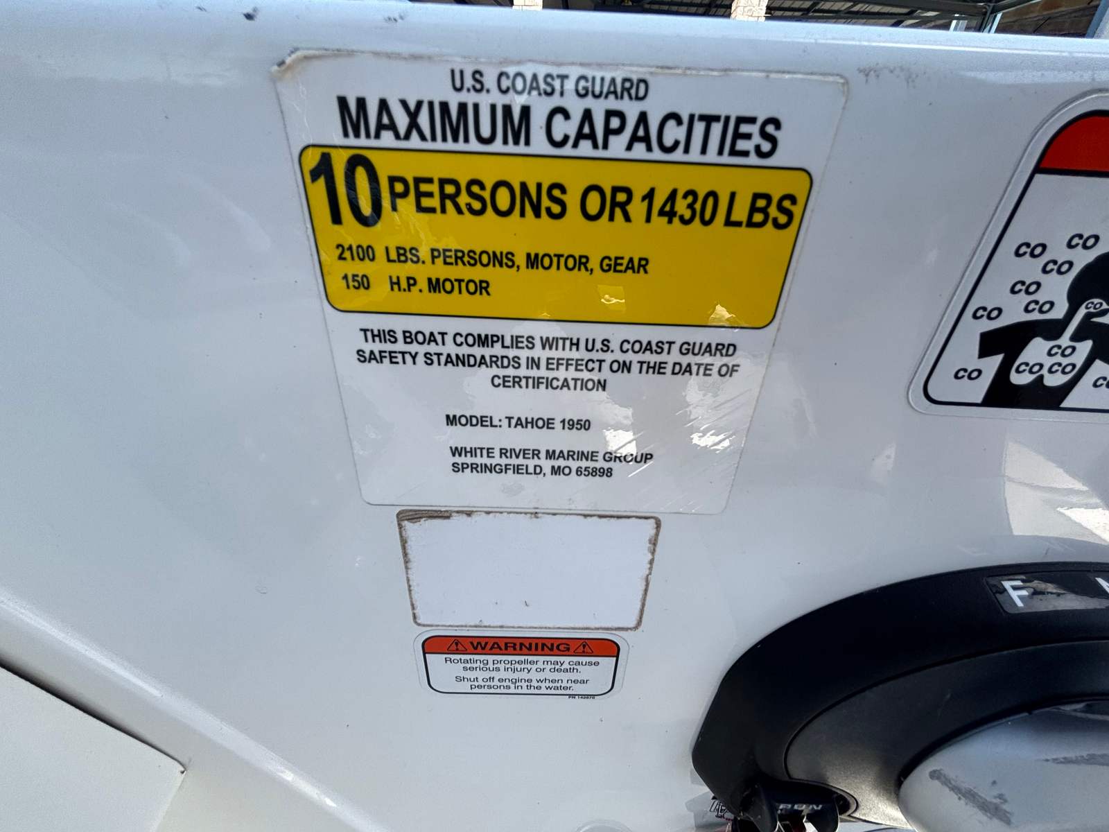 In summary, the 2019 Tahoe 1950 Bowrider is a standout option for anyone seeking a used Bowrider boat for sale. Its combination of style, performance, and versatility makes it a top choice for families, friends, and boating enthusiasts alike. With a powerful 150-horsepower engine, spacious 19-foot layout, and thoughtful design features, this Tahoe boat for sale is ready to deliver endless fun and relaxation on the water.Don’t miss your chance to own this exceptional Bowrider. Contact the dealer today to learn more about the 2019 Tahoe 1950 and start planning your next adventure on the water!