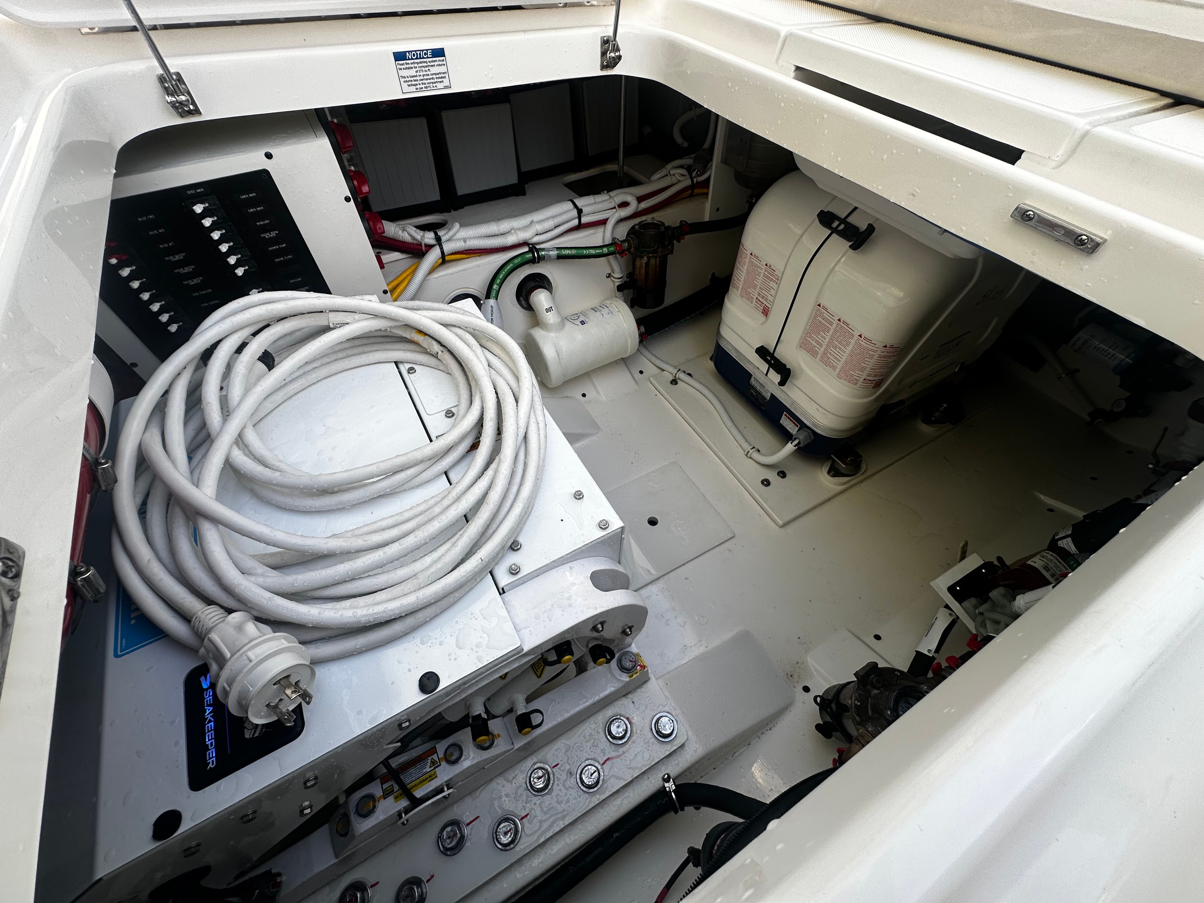 The Tiara Yachts 34 LS is as practical as it is luxurious. Its manageable size and advanced piloting system make docking and storage hassle-free, whether you are keeping your yacht at a marina or a private dock. The efficient twin engine setup ensures you can cover more water with less fuel, making longer trips and spontaneous getaways more accessible. The raw water washdown system simplifies post-adventure cleanup, while the rocket launchers provide organized storage for fishing gear, keeping the deck clutter-free.The additional Garmin 12-inch display enhances your navigation capabilities, offering clear and detailed information to help you chart your course with confidence. The solid surface materials used throughout the yacht are not only visually appealing but also resistant to wear and easy to clean, ensuring your investment remains in top condition for years to come.