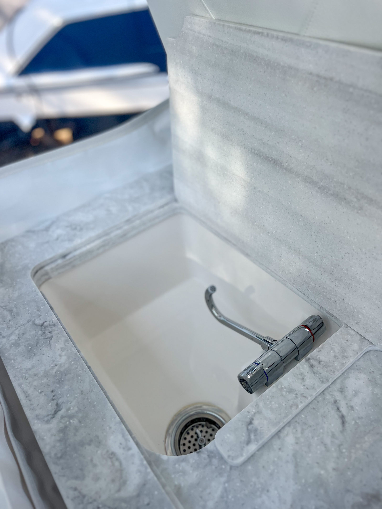 The Tiara Yachts 34 LS is designed with practicality in mind, making ownership as enjoyable as it is effortless. The Quick Release Fender Hanger streamlines the docking process, saving you time and hassle at the marina. The synthetic teak decking is not only beautiful but also easy to clean and maintain, ensuring your yacht always looks its best. The integrated generator and water heater provide the comforts of home, allowing you to extend your adventures without sacrificing convenience. The head macerator system offers efficient waste management, making longer trips more comfortable and worry-free. With ample storage throughout the yacht, you can bring along all your essentials for a day of fun or a weekend getaway.