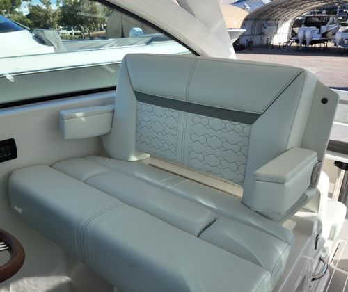 Practicality meets luxury in the Tiara Yachts 34 LX. The yacht’s efficient layout provides ample storage for gear, water toys, and personal belongings, making it easy to keep the deck clutter-free and organized. The raw water cockpit washdown simplifies cleaning after a day of fun, while the macerator waste system streamlines waste management for longer journeys. The generator and water heater support extended stays on the water, allowing you to enjoy all the comforts of home while exploring new destinations.Docking and maneuvering are effortless thanks to the advanced joystick piloting system, which provides precise control in tight spaces and challenging conditions. The synthetic teak deck is not only visually appealing but also easy to maintain, ensuring that your yacht remains in top condition with minimal effort. These practical features make the 34 LX an ideal choice for boaters who value convenience as much as luxury.