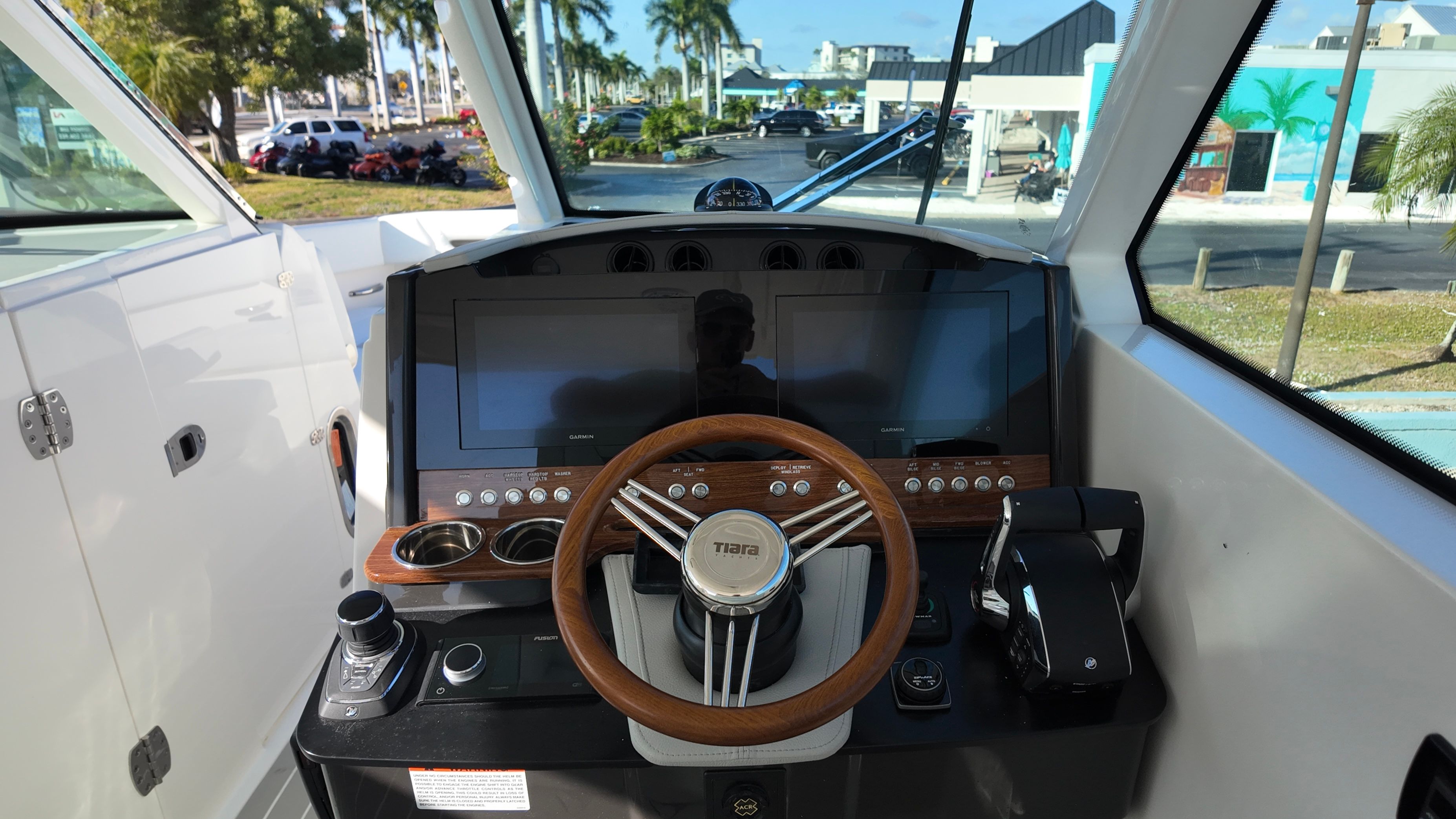 The 2025 Tiara Yachts 34 LX is loaded with premium features designed to elevate your boating lifestyle. The twin Mercury 400 V10 JPO engines are complemented by a reliable generator and a Panda 5KW/6-gallon water heater, ensuring comfort and convenience during extended trips. The Cool Helm Air Conditioning with Heat (6K 120V/60HZ) keeps the helm area comfortable in any weather, while the macerator waste system and raw water cockpit washdown make maintenance simple and efficient.Entertainment is at the forefront with a cockpit TV, allowing you and your guests to enjoy your favorite shows or sporting events while relaxing on the water. The synthetic teak deck, featured in both the cockpit and swim platform, adds a touch of elegance and durability, while the Platinum Gray color scheme enhances the yacht’s sophisticated appeal. The wood steering wheel, selected in lieu of the standard option, provides a classic touch and superior grip for the captain.