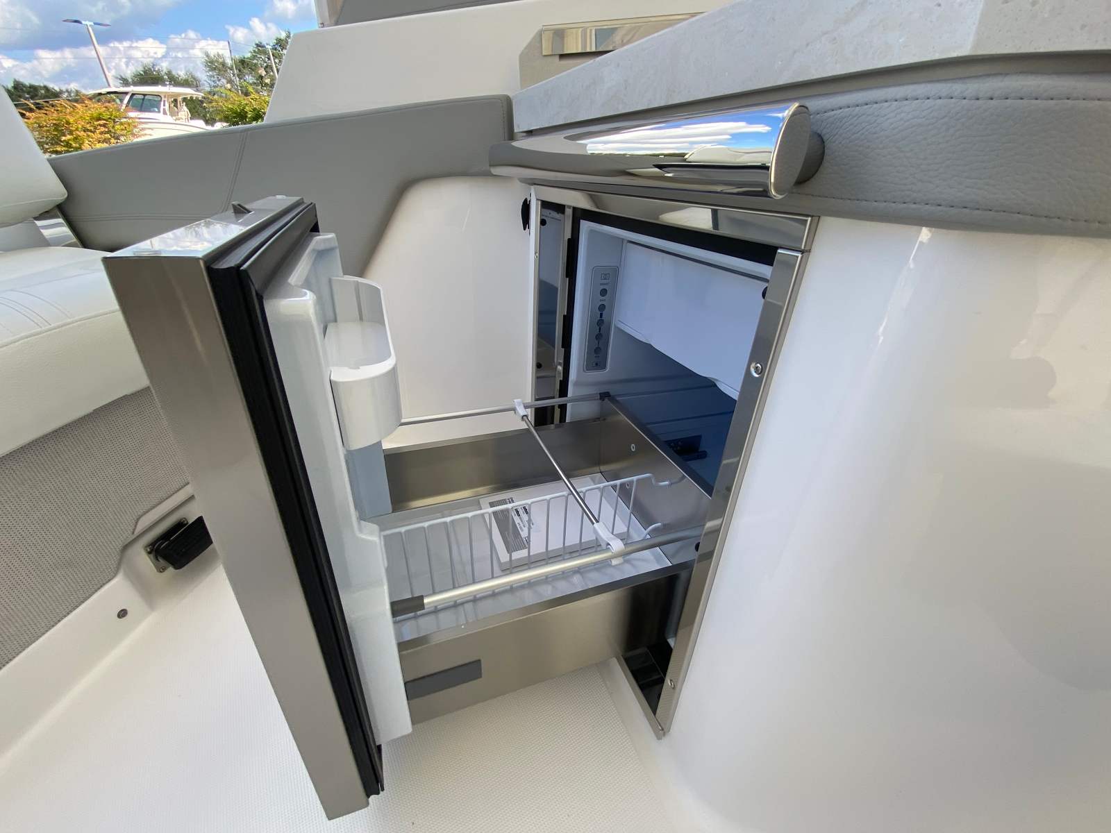 Power and precision are at the heart of the Tiara Yachts 34 LX. Equipped with twin Mercury V10 425 HP engines, this yacht boasts a combined 850 horsepower, delivering exhilarating speed and smooth handling. The advanced JPO (Joystick Piloting for Outboards) system provides effortless maneuverability, making docking and navigating tight spaces a breeze. Whether you’re cruising along the coastline or heading out for a day of adventure, the 34 LX offers a responsive and thrilling ride. The generator ensures reliable power for all your onboard systems, while the Panda 5KW/6 Gal Water Heater adds convenience for extended trips.