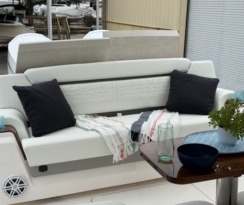 The Tiara Yachts 39 LS comes equipped with a suite of premium features designed to enhance your boating lifestyle. The Seakeeper SK4 GYRO stabilizer ensures a smooth and comfortable ride by minimizing roll, even in choppy conditions. The head macerator system offers convenience and efficiency, while the cool helm AC with heat keeps the captain and guests comfortable in any weather. Maintenance is made easy with the oil changer for the generator, and the all-chain windlass provides reliable and effortless anchoring.For those who love to entertain, the buffet lounge module creates a perfect space for socializing and dining. The forward manual Mediterranean-style sunshade offers protection from the sun, allowing you to relax in comfort during long days on the water. The starboard fridge ensures that refreshments are always within reach, adding to the overall enjoyment of your time aboard.