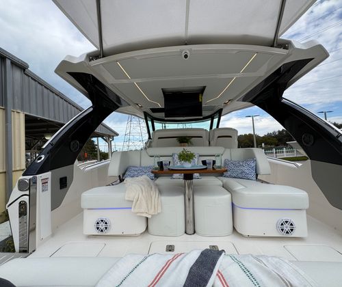 The versatility of the Tiara Yachts 39 LS makes it the perfect choice for a wide range of boating activities. For family outings, the spacious deck and comfortable seating create an inviting environment for relaxation, sunbathing, and shared meals. The yacht’s stability and performance make it ideal for exploring new destinations, whether you are embarking on a weekend getaway or a longer coastal adventure.For those who enjoy entertaining, the buffet lounge module and ample seating provide the perfect setting for social gatherings, cocktail parties, or sunset cruises. The Mediterranean-style sunshade offers a cool retreat from the sun, allowing guests to enjoy the outdoors in comfort. Whether you are hosting friends, spending quality time with family, or seeking a private escape, the Tiara Yachts 39 LS adapts to your needs and exceeds your expectations.