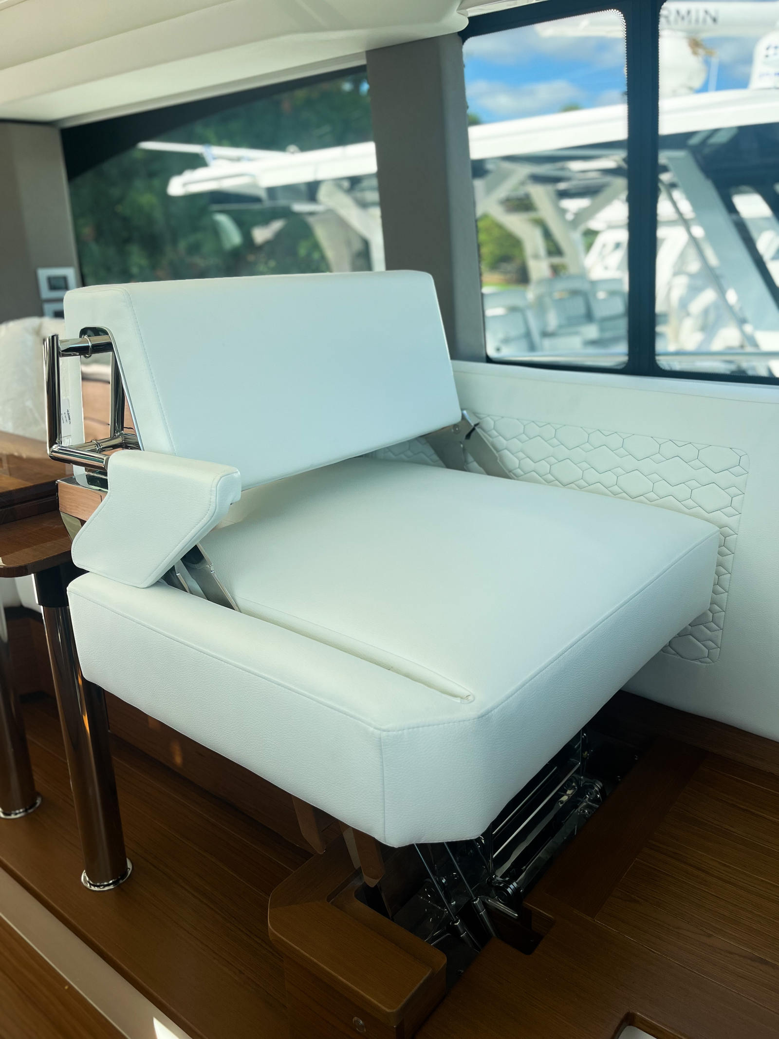 The 2026 Tiara Yachts 43 LE is packed with innovative features and premium amenities that set it apart from other yacht boats for sale. Among its standout features are the twin Mercury 600 V12 Verado outboard engines, which offer unmatched performance and reliability. The oil changer for the generator streamlines maintenance, while the ElectroSea Strainer ensures your systems run smoothly by keeping debris at bay. The head macerator system adds convenience and efficiency to onboard living.For those who value stability and comfort, the Seakeeper SK6 Gyro is a game-changer, dramatically reducing roll and providing a smooth ride even in choppy waters. The lounge module creates a versatile and inviting space for relaxation and socializing, while four gunwale rod holders (two port and two starboard) make this yacht ideal for fishing enthusiasts. The synthetic teak decking on the port side terrace and accents throughout the yacht add a touch of elegance and durability, perfectly complementing the Platinum Grey with white lines exterior.Additional features include a refrigerated cooler box for keeping refreshments chilled and a cockpit TV for entertainment, ensuring that every moment onboard is enjoyable and convenient.
