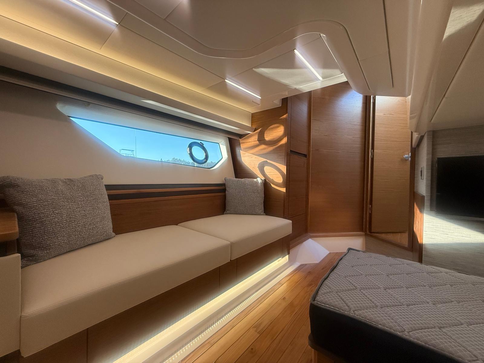 The Tiara Yachts 48 LE is packed with premium features designed to elevate your boating experience. The Companion Garmin Screen offers intuitive navigation and system management, ensuring you stay informed and in control at all times. The interior is adorned with Ocean Wave fabric, creating a serene and inviting atmosphere that reflects the beauty of the sea. Both the interior and exterior surfaces feature LG Aurora Frost solid surfaces, adding a touch of elegance and durability to every space. The all-chain windlass simplifies anchoring, while the oil changer for the generator streamlines maintenance, allowing you to focus on enjoying your time aboard. The macerator waste system and Electrosea strainer enhance convenience and reliability, ensuring that every journey is smooth and worry-free.