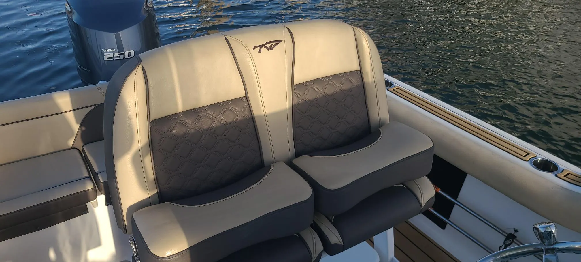 Full Hull White, Yamaha F 250 XB, White Console Faceplate, SeaStar Hydraulic Steering with Tilt Helm (Standard on 250hp Mechanical., Lewmar PG 13.5” Wheel, NMEA 2K Network
