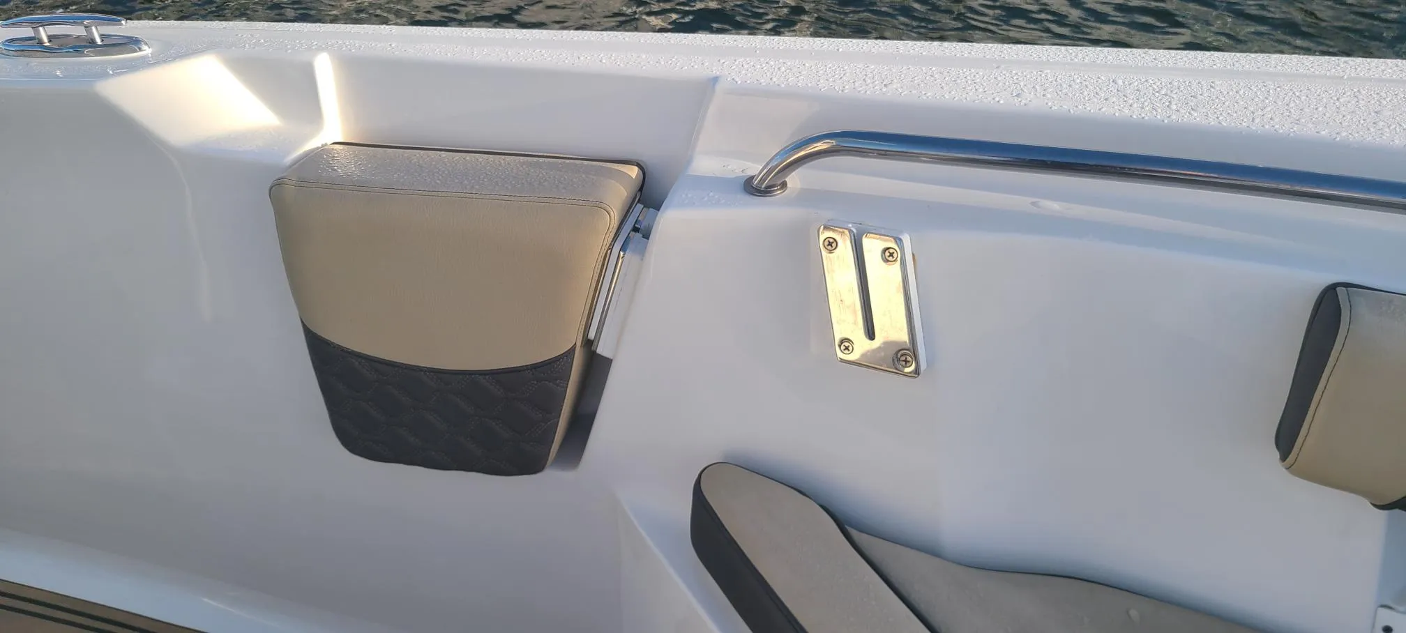Comfort: The boat includes a swingout backrest on the bow, a rear bench, and a fold-up swim ladder for easy access.
