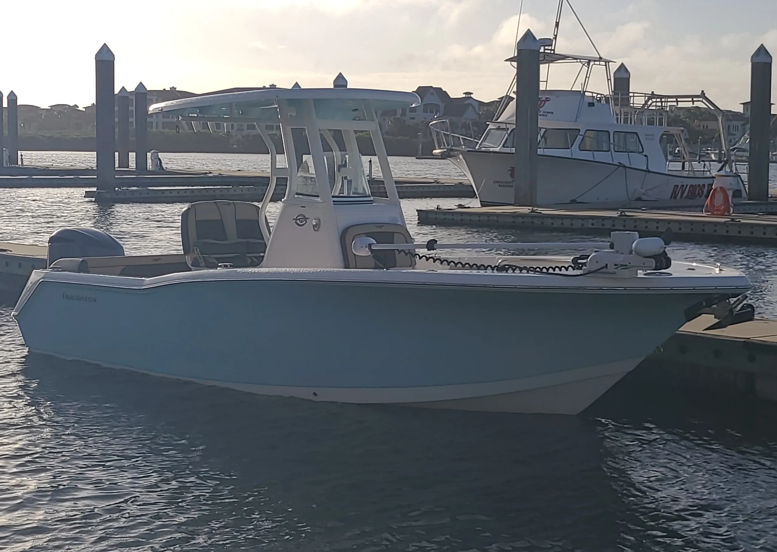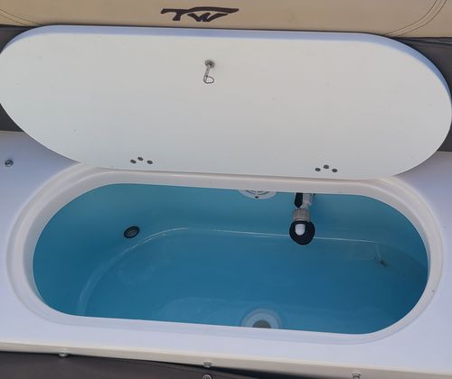 Storage: Comes with 33-gallon fiberglass boxes for port and starboard, a 19-gallon aerated live well, and a raw water wash down for easy cleaning.