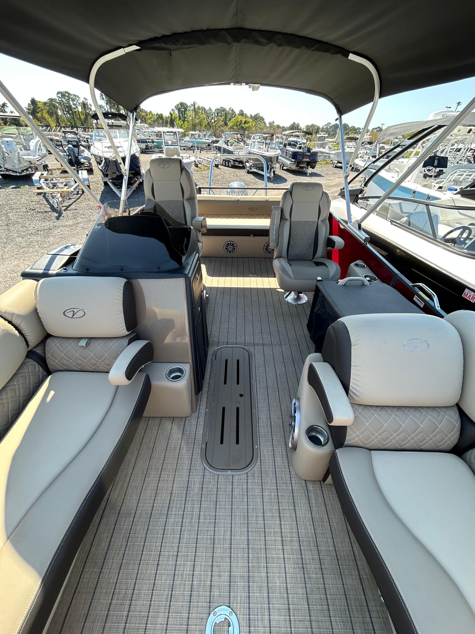The 2023 Veranda VR22VLC is a 24-foot pontoon boat that perfectly balances style, space, and functionality. Measuring approximately 24 feet in length, this vessel provides ample room for entertaining, relaxing, and enjoying every moment on the water. As a used pontoon boat in excellent condition, it has only 15 engine hours, ensuring you get a nearly new experience with the added value of a pre-owned vessel. The VR22VLC is renowned for its innovative design, premium construction, and attention to detail, making it a standout option among pontoon boats for sale.