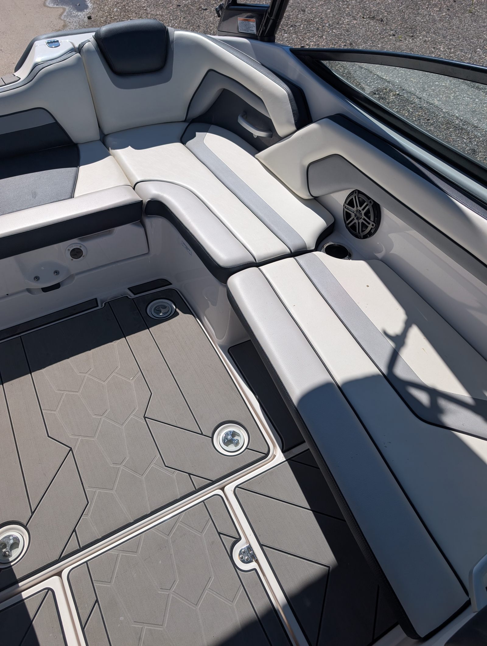 Under the hood, the Yamaha AR195 is powered by a single, high-output engine delivering an impressive 250 horsepower. This jet boat is built for speed and agility, allowing you to carve through the water with ease. The jet propulsion system provides quick acceleration, responsive handling, and a smooth ride, making it ideal for water sports, cruising, or simply enjoying the open water. With 134 engine hours, this Yamaha jet boat has been well-maintained and is ready to provide reliable performance for years to come.